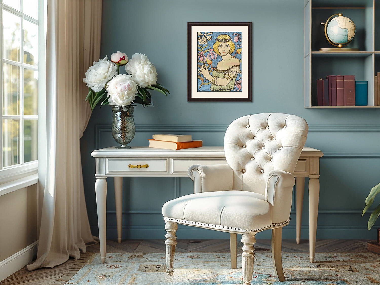 Experience the grace and artistry of Affiche Pour le Salon des Cent (Girl with Orchids) by Paul Berthon. Originally designed in 1895 for the renowned Salon des Cent exhibition in Paris, this Art Nouveau masterpiece features a serene woman framed by flowing orchids—an elegant example of Berthon’s signature style. This full-coverage, fine art pattern offers five finished sizes, regular and large-print charts, and detailed instructions for a seamless stitching experience. A stunning project for stitchers who love fine art, vintage elegance, and the romantic beauty of the Art Nouveau period.