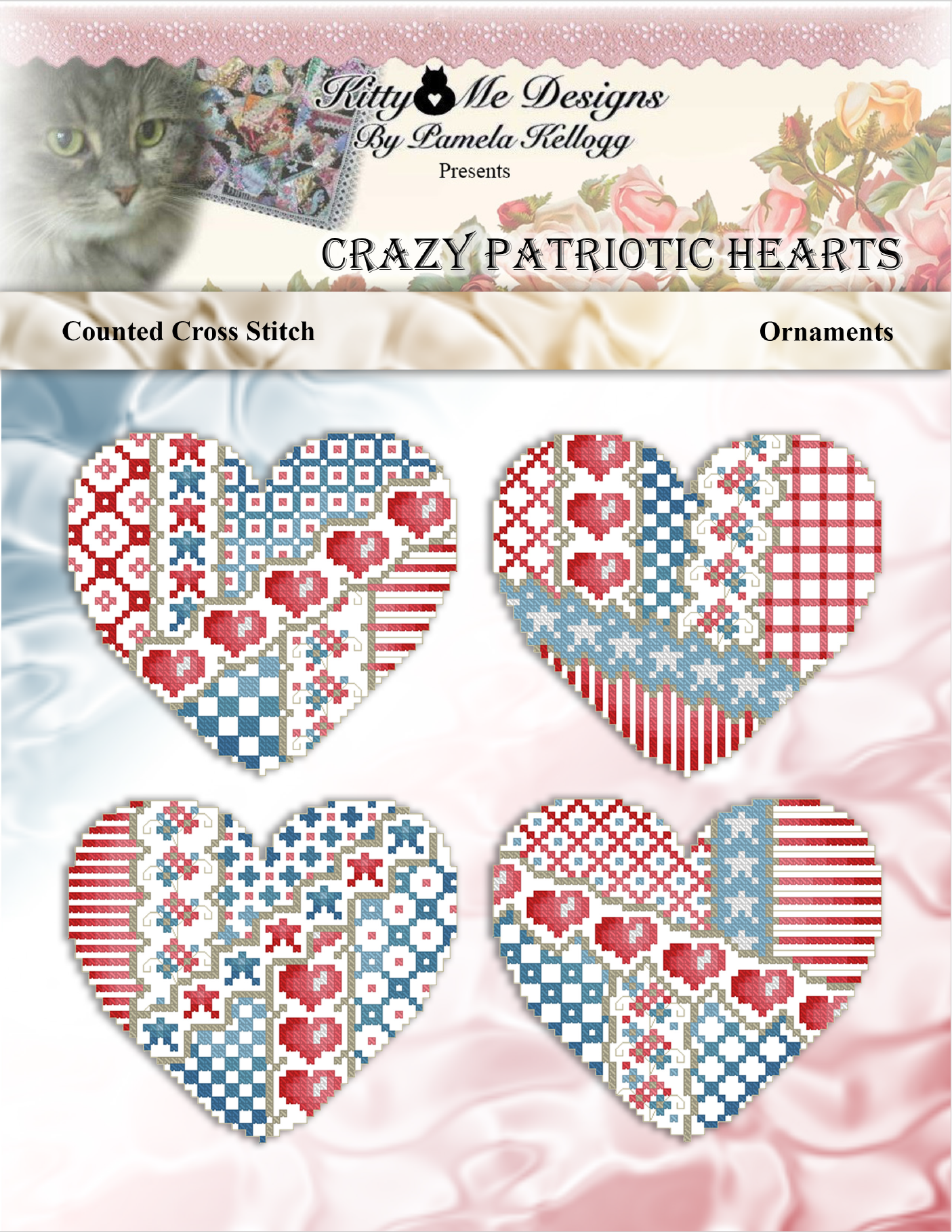 Crazy Patriotic Hearts Cross Stitch Pattern
