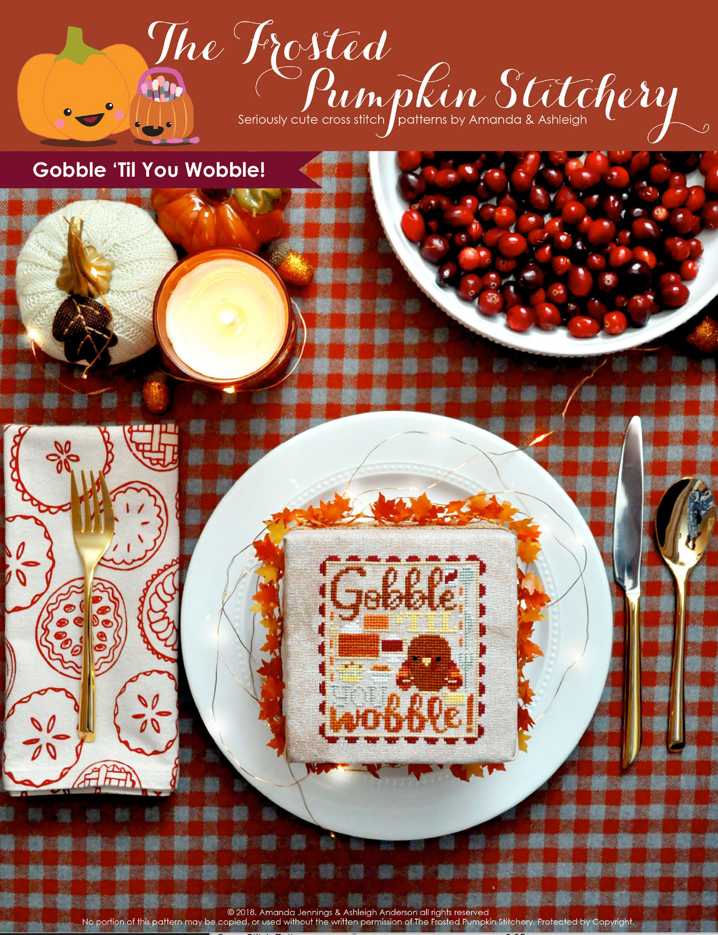 Gobble 'Til You Wobble Cross Stitch Pattern contains: