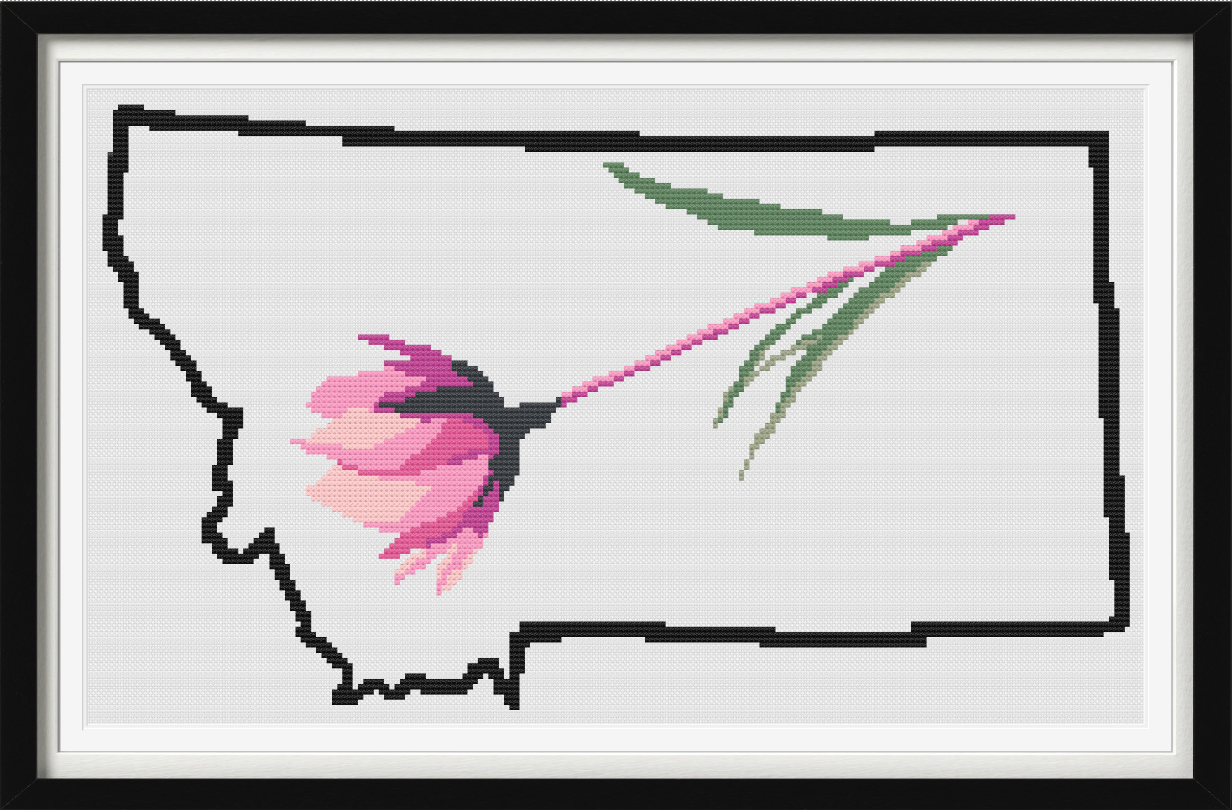 Montana & Bitterroot Outline Map Black Cross Stitch Pattern