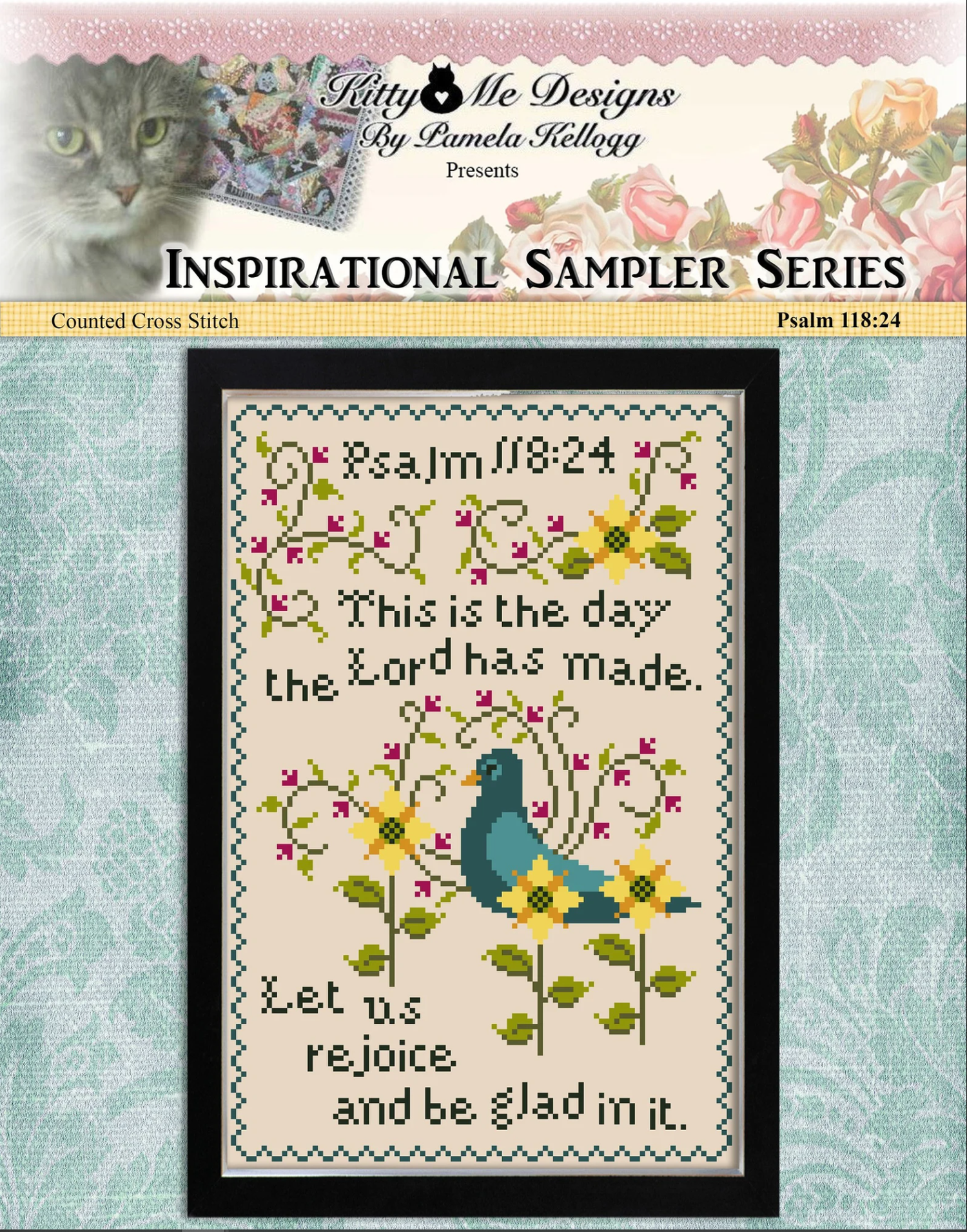 This counted cross stitch sampler is based on Psalm 118:24 – This is the day the Lord has made.