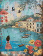 Let your imagination wander to the sparkling blue coast with Mediterranean Harbor View. This beautifully detailed scene depicts a peaceful terrace overflowing with flowers, overlooking a harbor lined with villas and sailboats drifting in the sun. A young woman stands at the balustrade, gazing across the water — a symbol of tranquility and quiet escape. This full-coverage, fine art pattern includes regular and large-print charts, five finished size options, and easy-to-follow instructions, along with a floss amount conversion chart for accurate thread planning. Designed for stitchers who love light, color, and finely detailed landscapes, this pattern captures the warmth and elegance of the Mediterranean with every stitch.