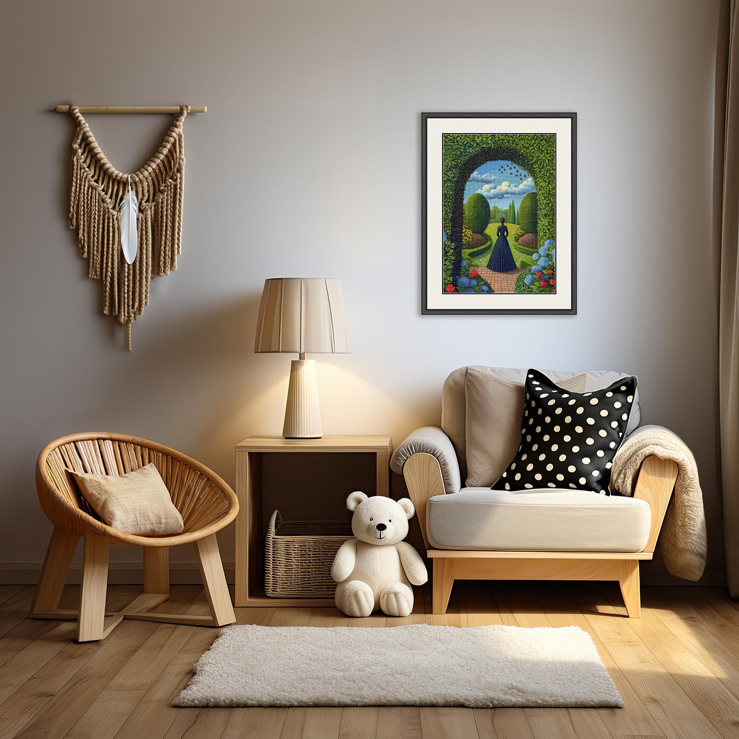 Bring refinement and imagination to your stitching with Elegant Woman in Secret Garden. Set in a surreal, dreamlike garden, this full-coverage design features a graceful woman surrounded by lush florals and abstract detail—a perfect blend of fantasy and elegance.