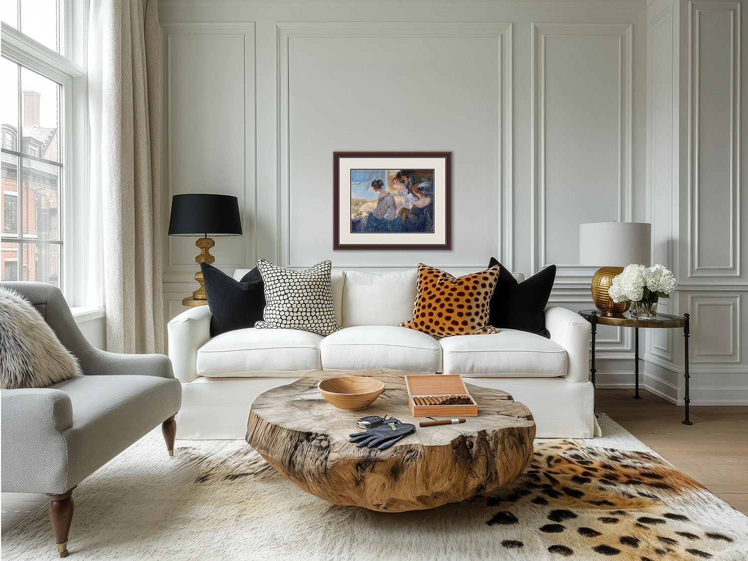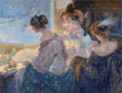 This stylish piece by Ulisse Caputo captures a poised woman seated in a theater box, rich with elegance and charm.