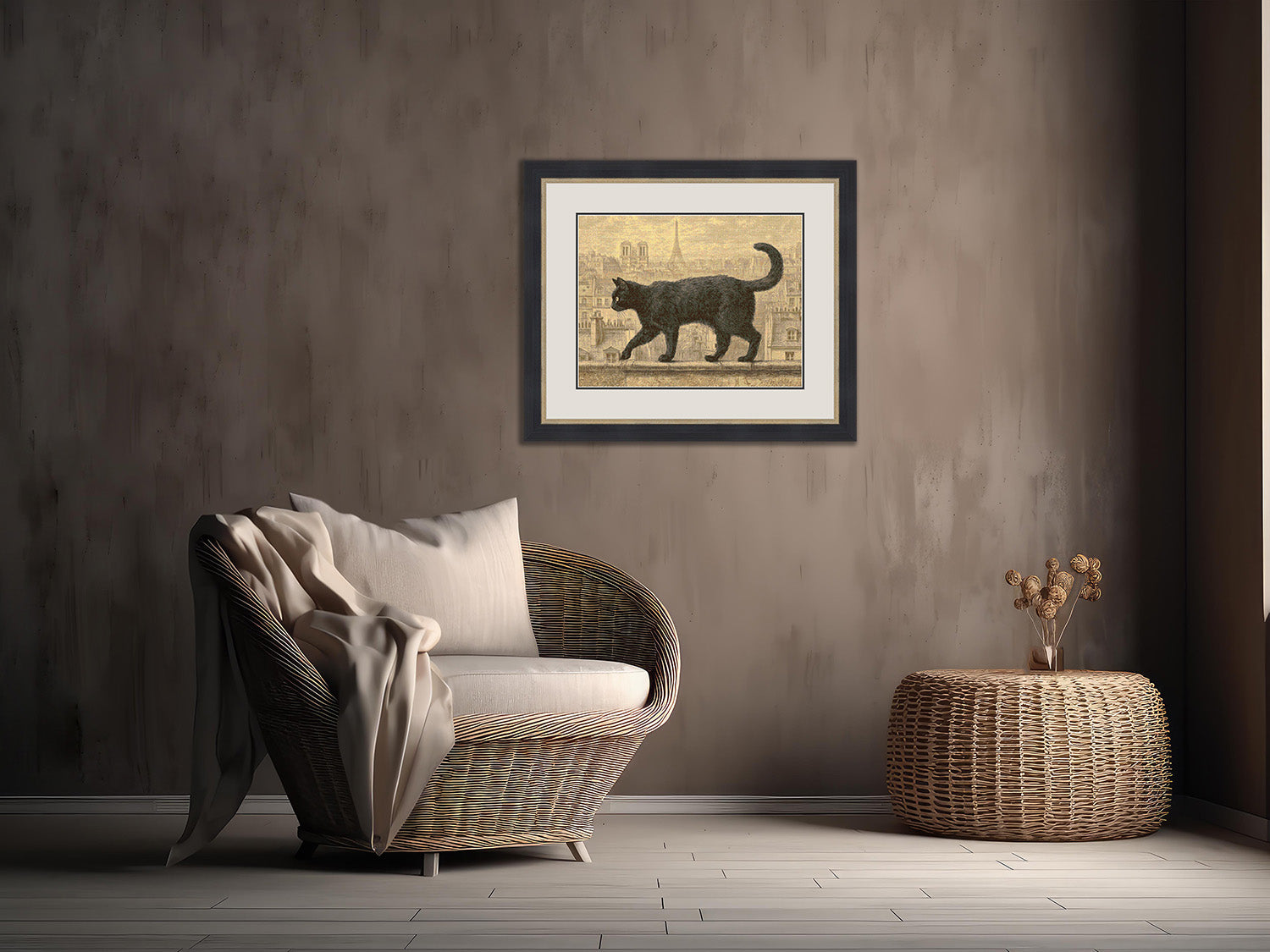 The Parisian Black Cat Cross Stitch Pattern captures the elegance of Parisian rooftops and the quiet mystery of a graceful black cat. This full-coverage design features a sleek feline strolling along a rooftop ledge, framed by a beautifully detailed Paris skyline rendered in warm sepia tones. The vintage engraving style gives this piece a timeless European charm, blending urban atmosphere with refined artistry.