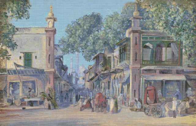 Experience the beauty and atmosphere of colonial-era India with The Street of Blood, Delhi by Marianne North. Painted in the 1870s, this stunning scene portrays a Delhi street of red sandstone buildings glowing in the afternoon sun — their intricate architecture and warm hues rendered in North’s distinctive, realistic style. This full-coverage, fine art pattern includes regular and large-print charts, five finished size options, complete instructions, and a floss amount conversion chart. Perfect for advanced stitchers who love architecture, history, and detailed compositions, this design brings a piece of 19th-century India to life in exquisite color.